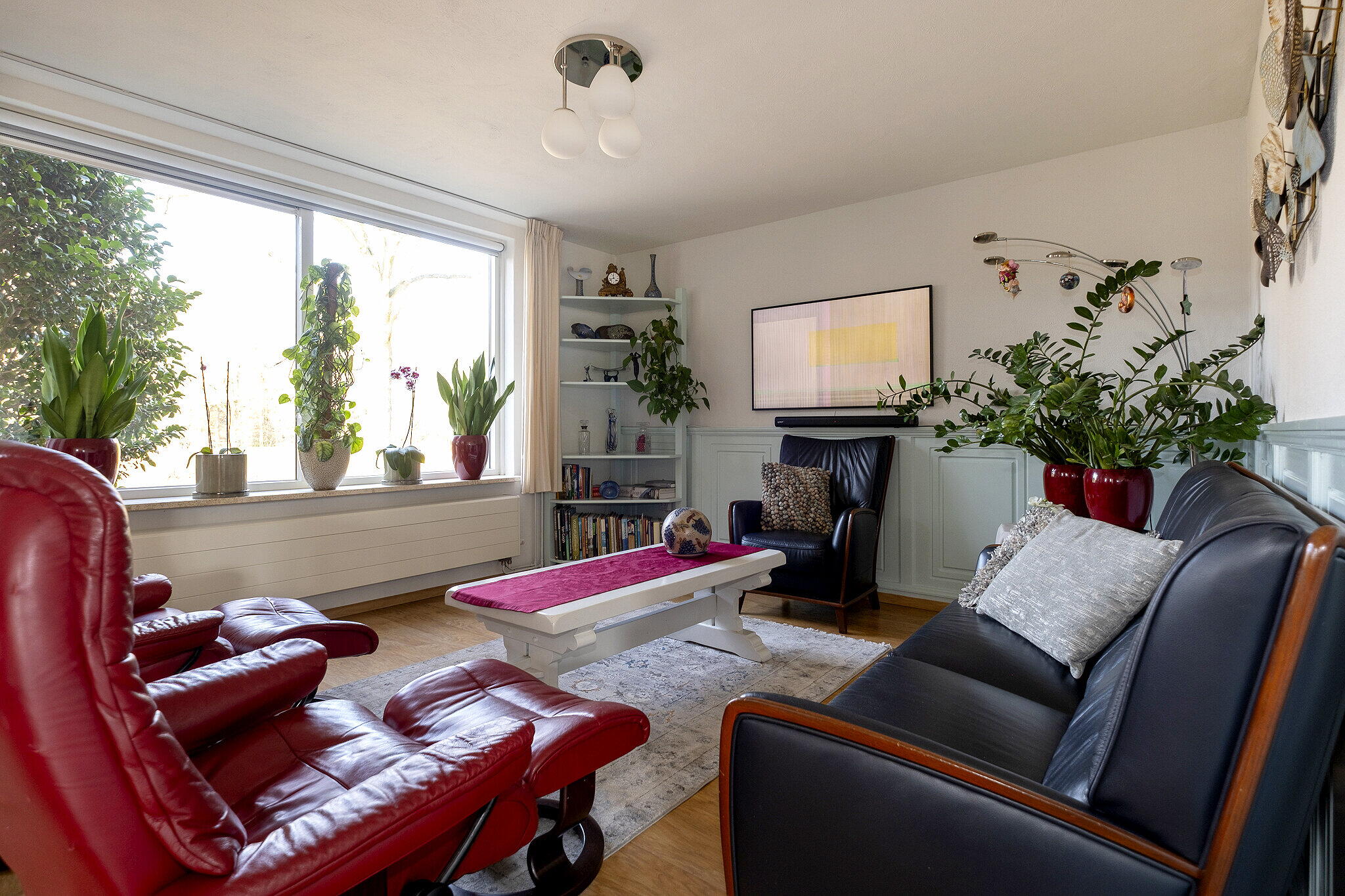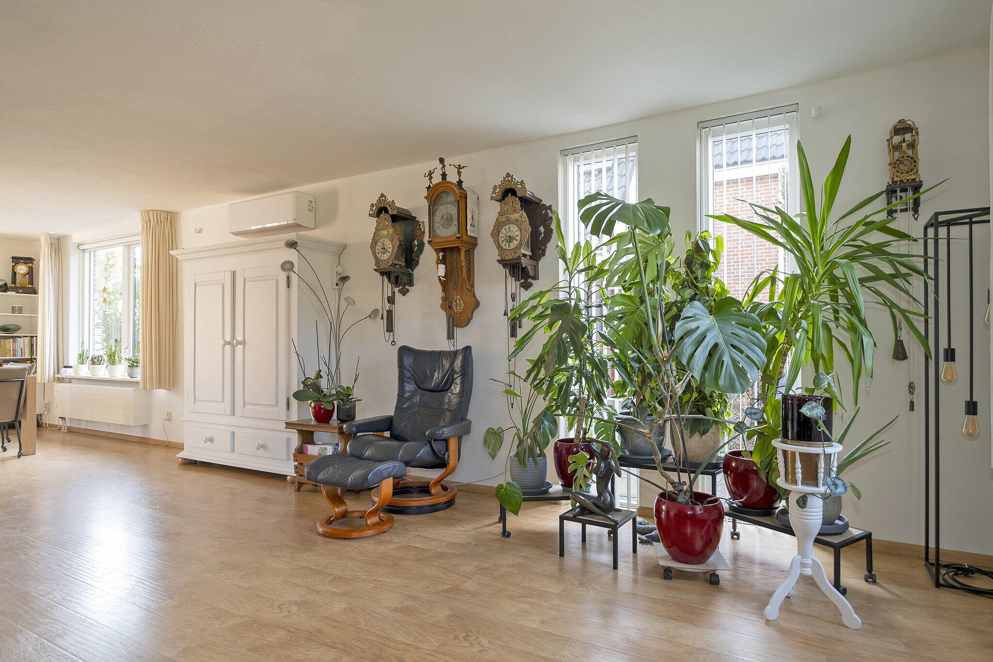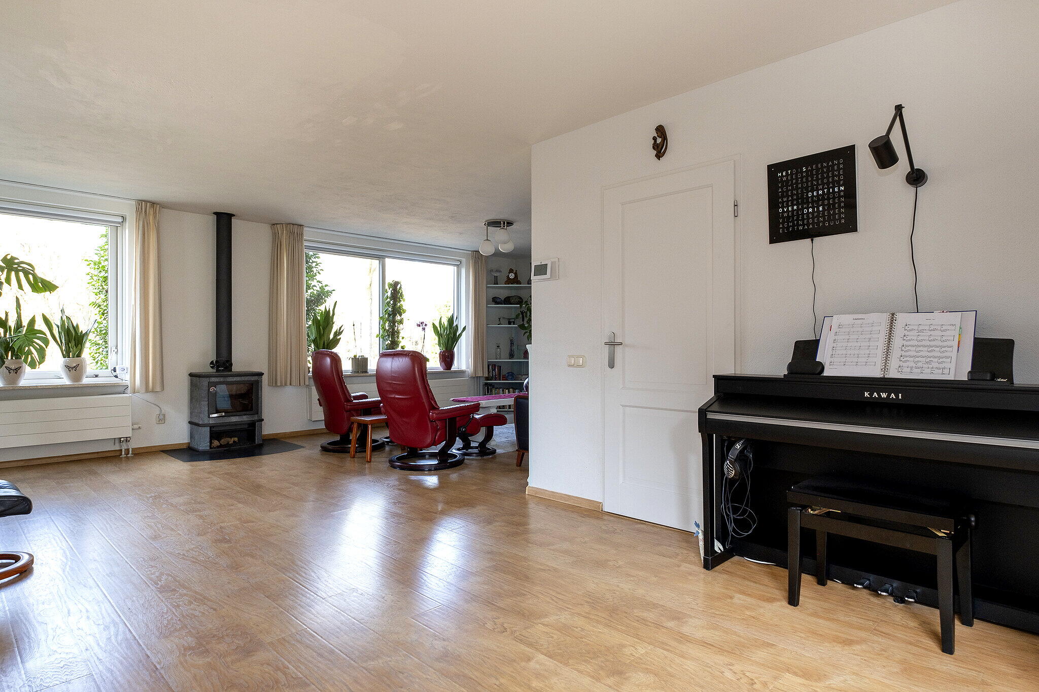Via de entree kom je in de hal met toegang tot de verschillende vertrekken. Aan de voorzijde van de woning bevindt zich de woonkamer (ca. 41 m²) met een prettige lichtinval en een fantastisch uitzicht over het Noord-Willemskanaal en het omliggende groen. De woonkamer is voorzien van een airco en een sfeervolle houtkachel.