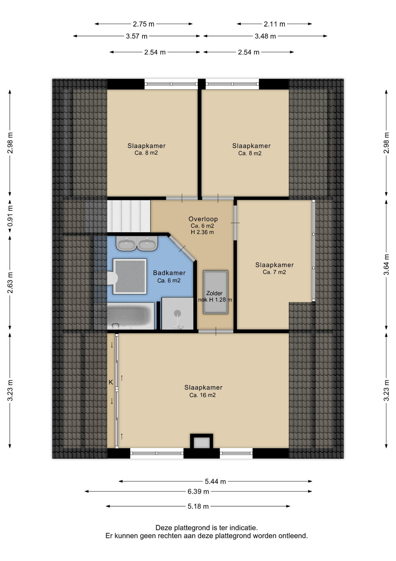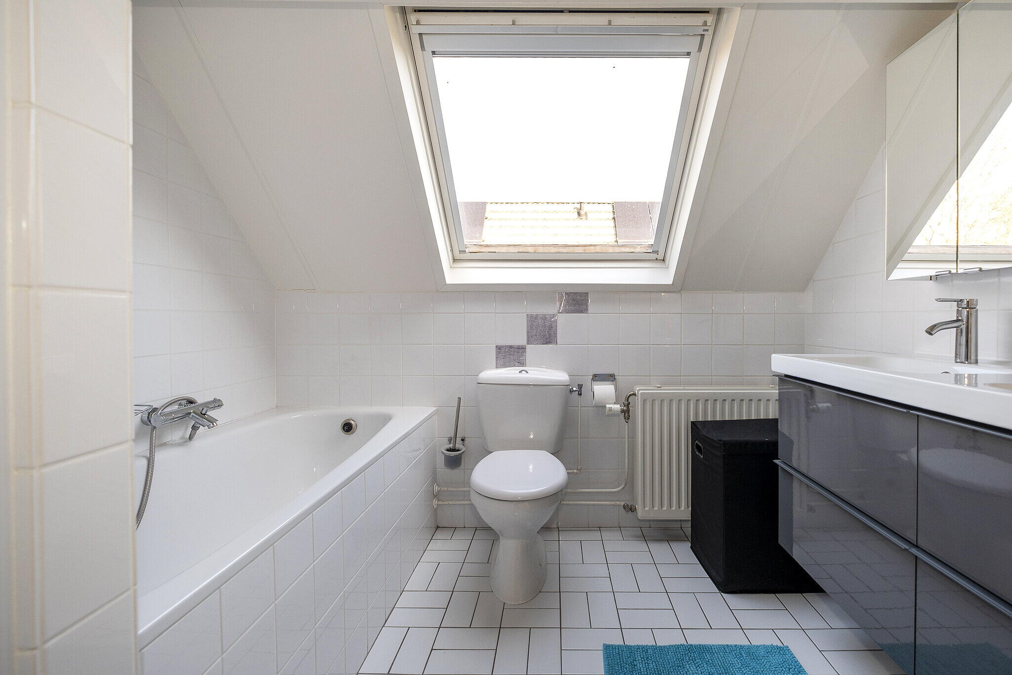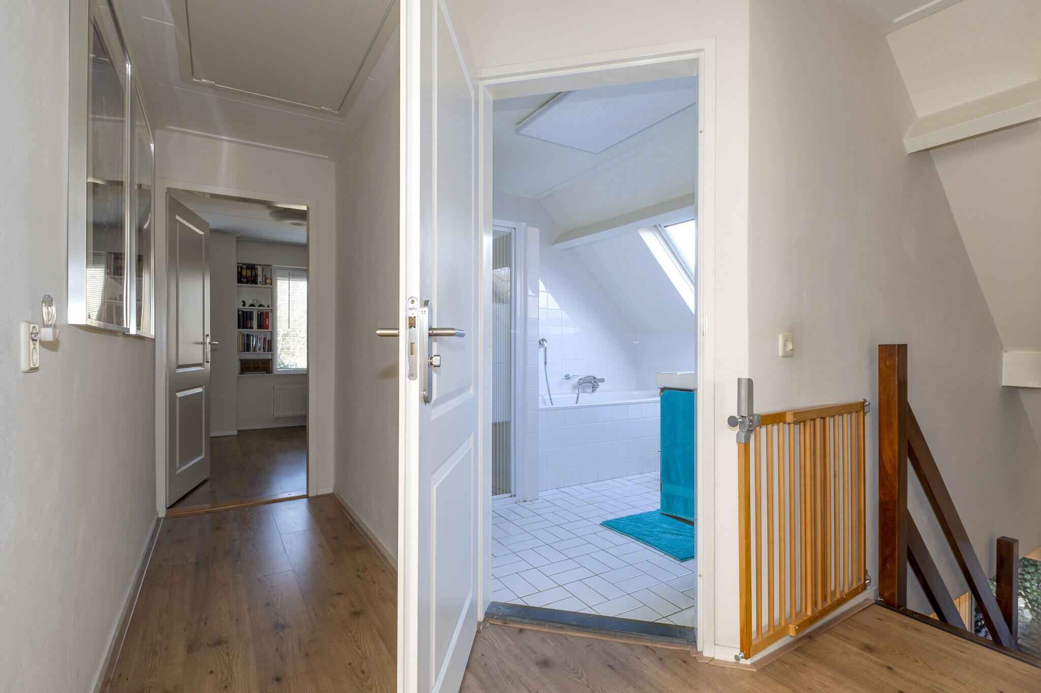 De overloop biedt toegang tot vier slaapkamers. Aan de voorzijde bevindt zich de ruime hoofdslaapkamer van circa 16 m² met kastenwand en sauna. Daarnaast zijn er nog drie slaapkamers aanwezig van circa 7 m² en twee kamers van circa 8 m². De badkamer (ca. 6 m²) is van alle gemakken voorzien. Zo heb je de beschikking over een ligbad, douche, dubbele wastafel en een toilet.