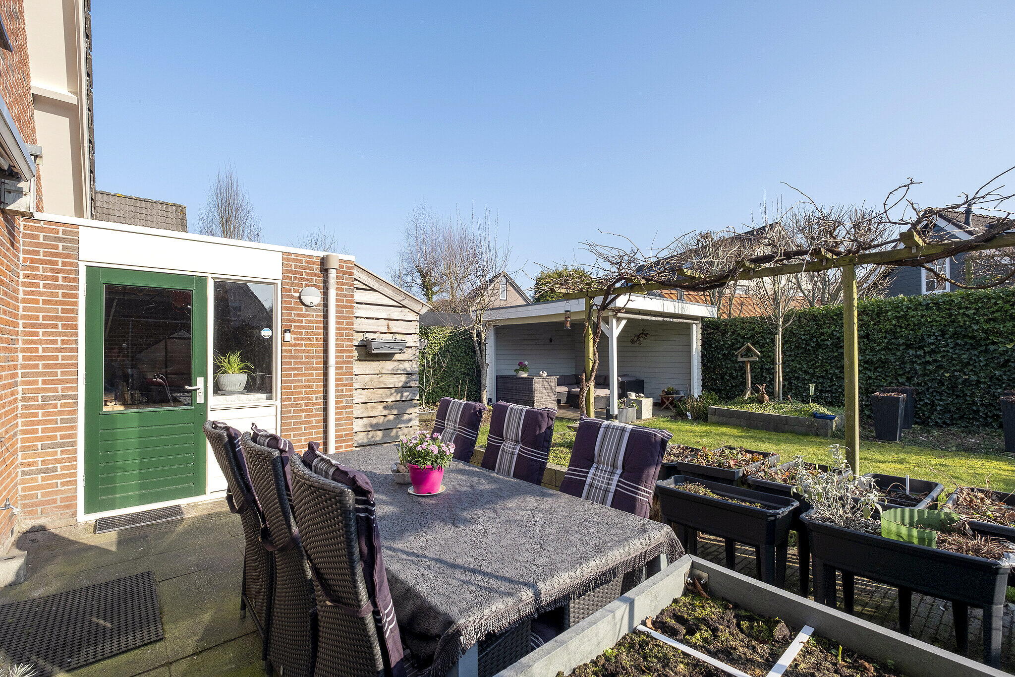 De achtertuin is gelegen op het zuiden en biedt daardoor volop zon. De tuin is groen aangelegd en biedt een prettige en beschutte plek om te ontspannen en te genieten van het buitenleven. Daarnaast beschikt de tuin over een terras en een overkapping, waardoor je hier op verschillende momenten van de dag heerlijk buiten kunt zitten.