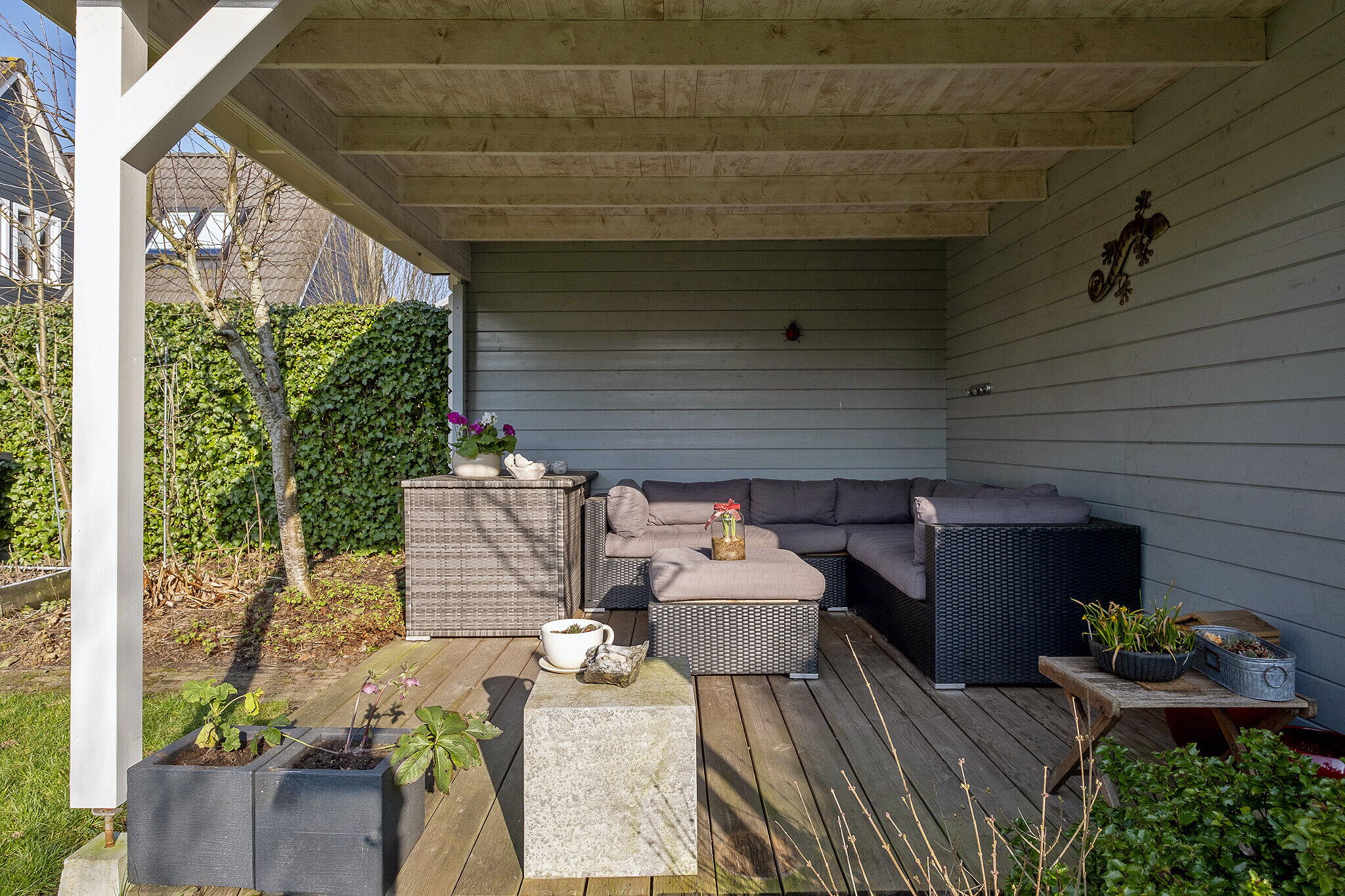 • Zonnige en groen aangelegde achtertuin op het zuiden met terras en overkapping;