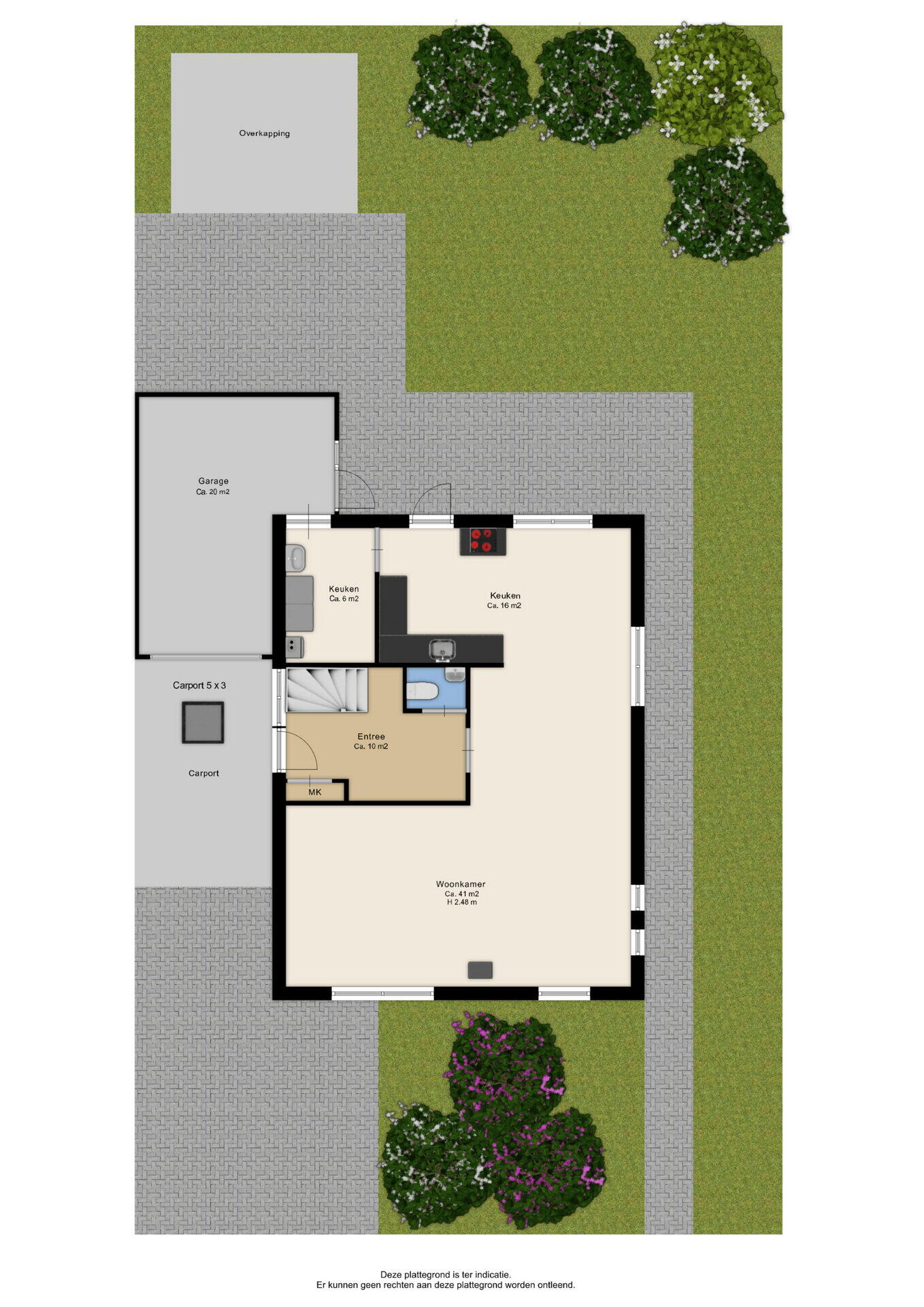 • Parkeren op eigen terrein voor circa drie auto’s;